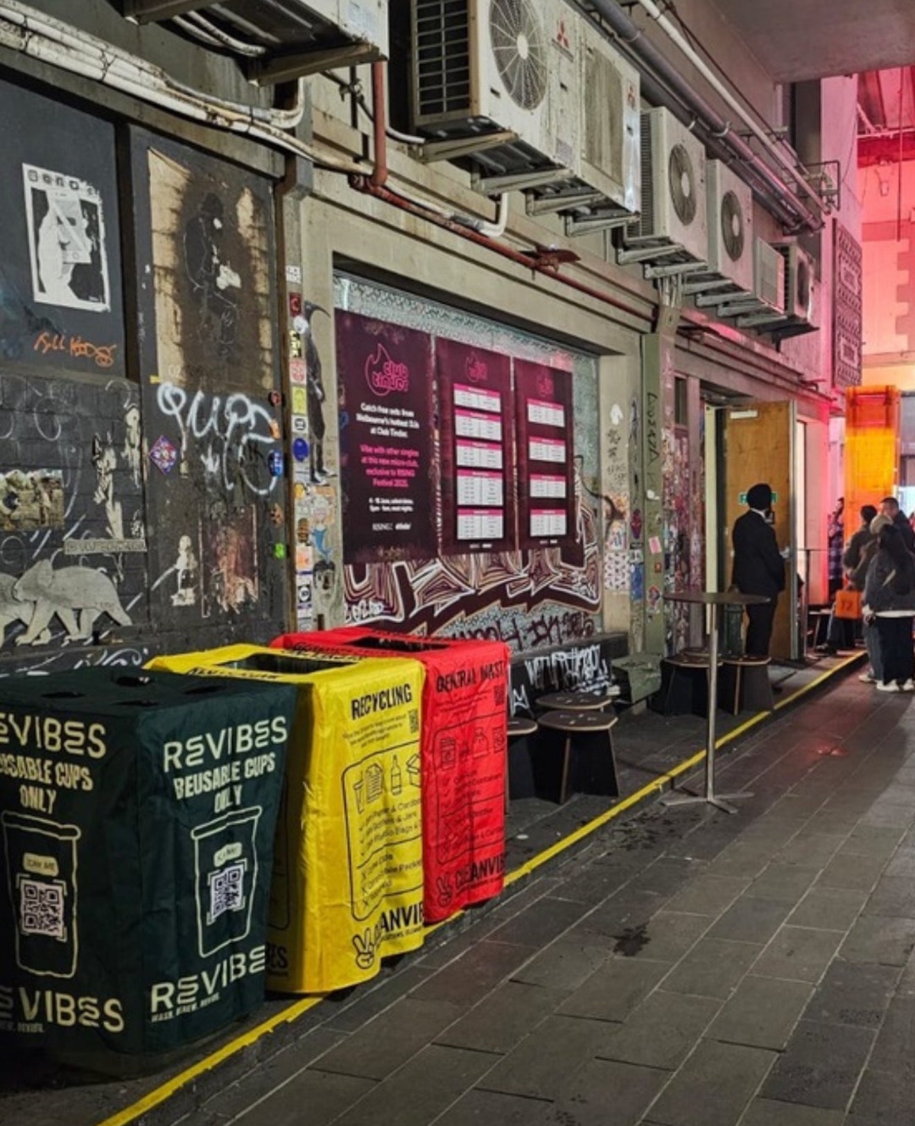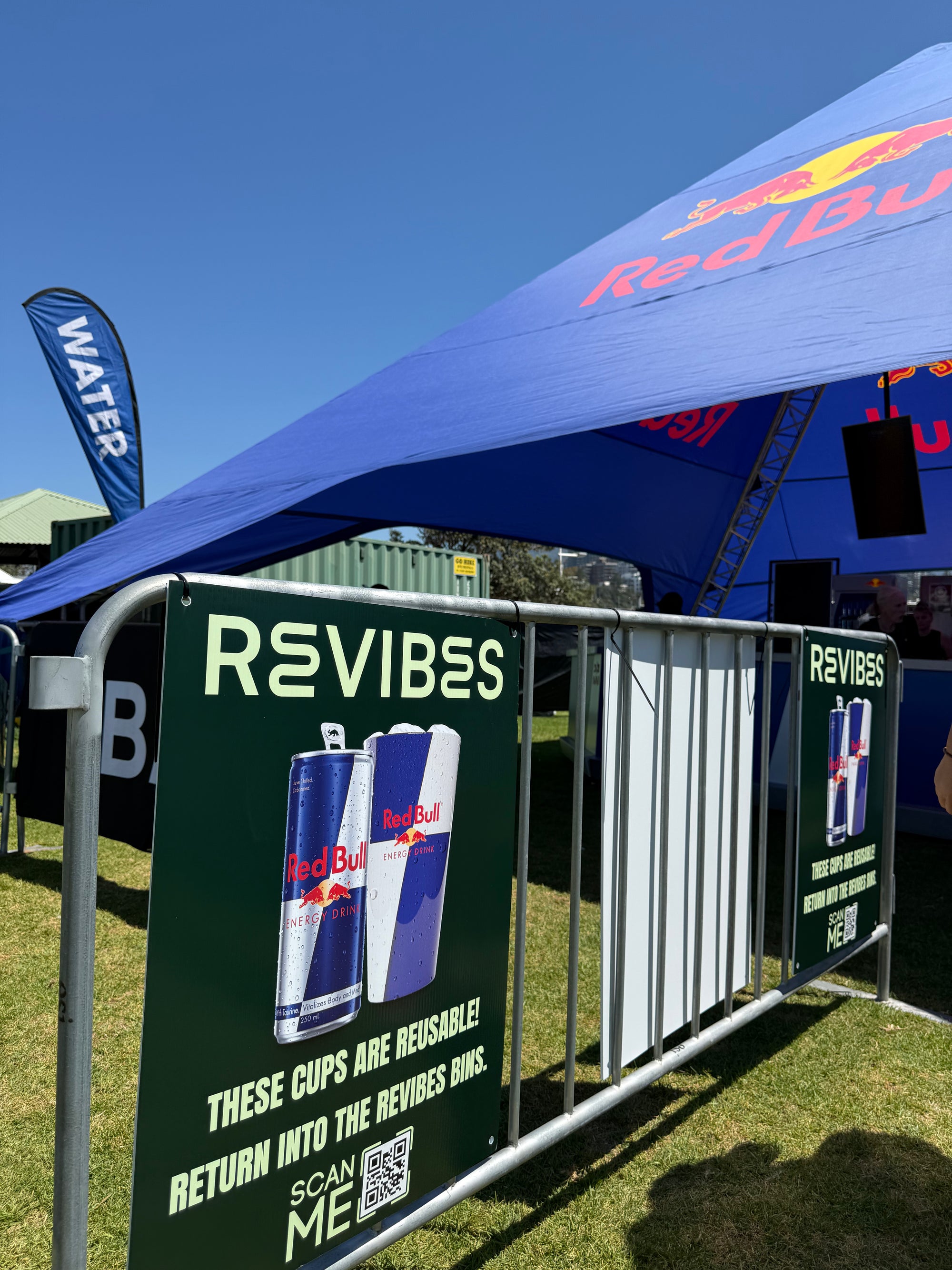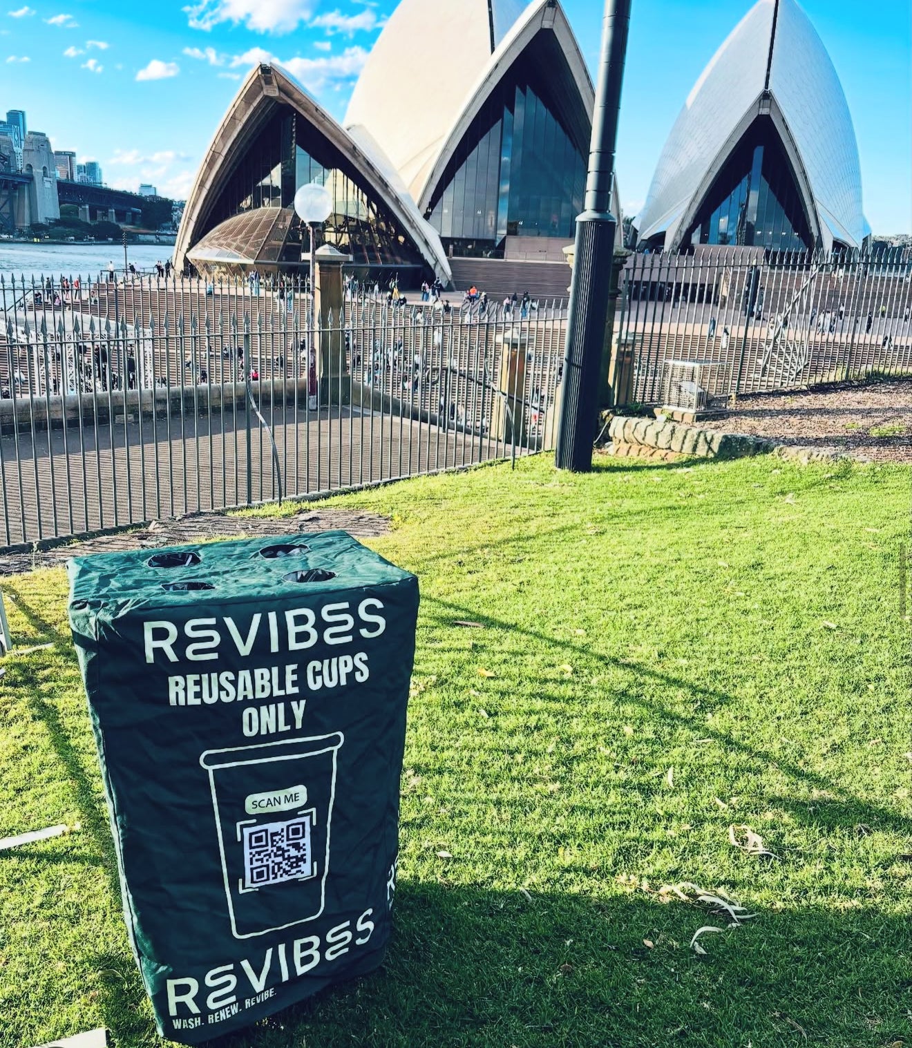 Revibes supplies branded or unbranded reusable cups to your venue or event. Guests use the cup, return it to our designated “Reusables Here” bins, and we collect, wash, sanitise, and return them—ready for the next service cycle. It’s simple, hygienic, and designed to integrate into your existing service flow.